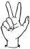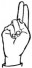 На ћирилици написано РУМЕНА ПЕЈИЋ састоји се из 11 слова [?]. Исписано ћириличном једноручном азбуком за глувонеме: